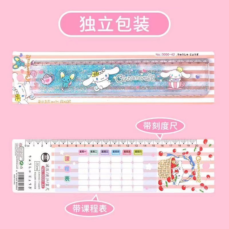 创意梦幻流沙尺20CM格尺波浪线曲线尺子直尺学生少女入油流沙格尺