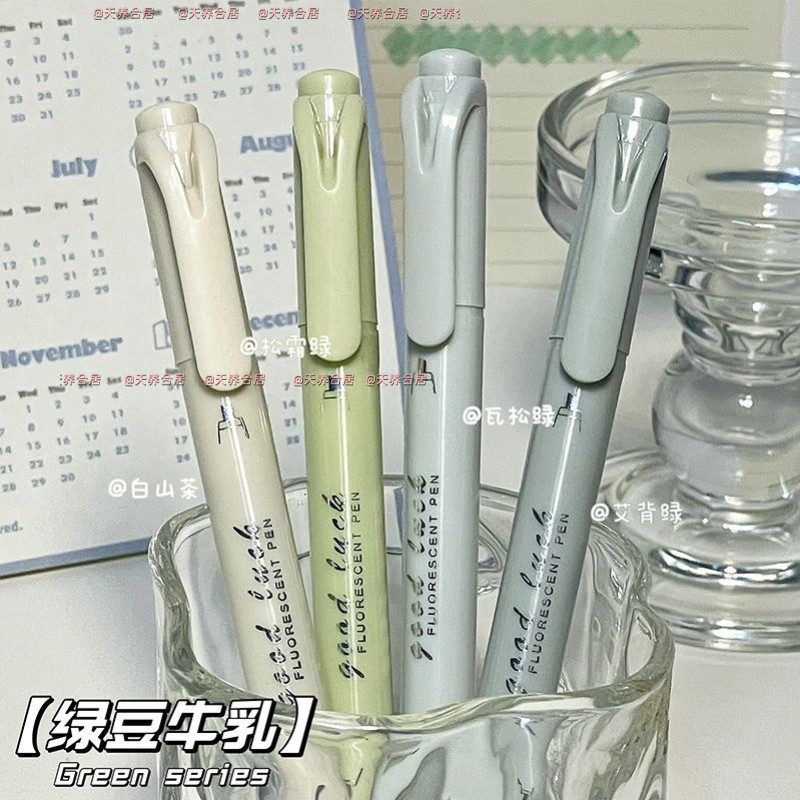 集物社淡色系护眼荧光笔新国风围炉煮茶萤光笔学生用高颜值彩色记号笔大容量划重点标记手账专用银光萤光笔