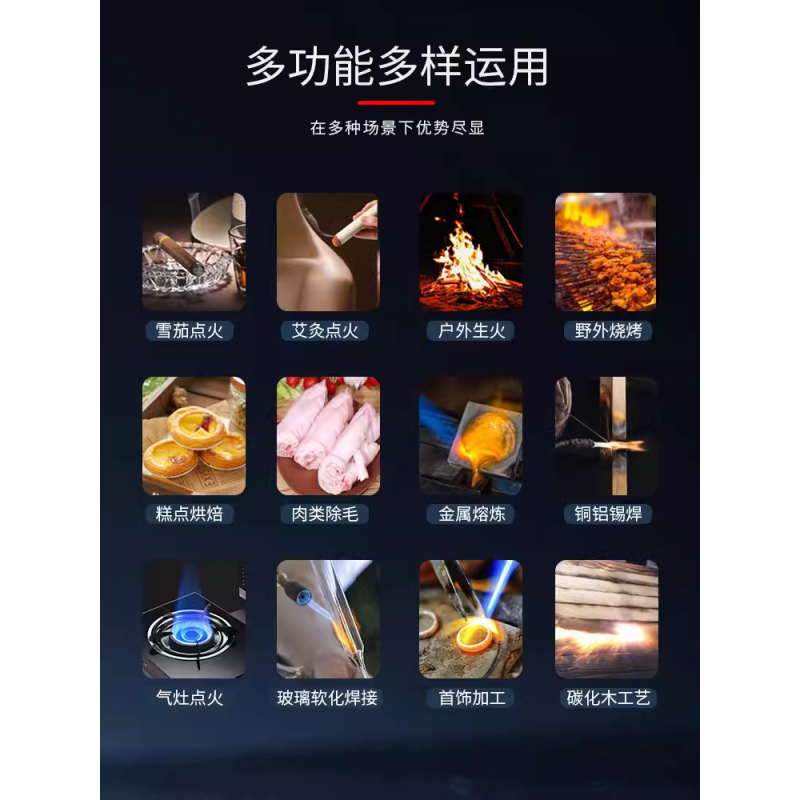 防风充气打火机艾灸点火棒烟雪茄专用火机喷枪点火器金属喷火耐用