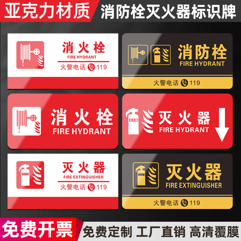 亚克力室内消防标识标牌 消火栓标识消防标识牌消防栓贴纸灭火器使用方法标识牌消防箱指示牌