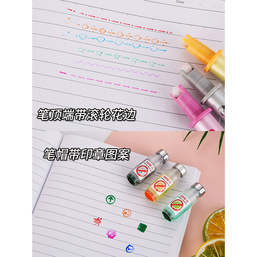 XT新款花边印章图案积极接种疫苗笔仿真打疫苗的笔针管笔中性笔针