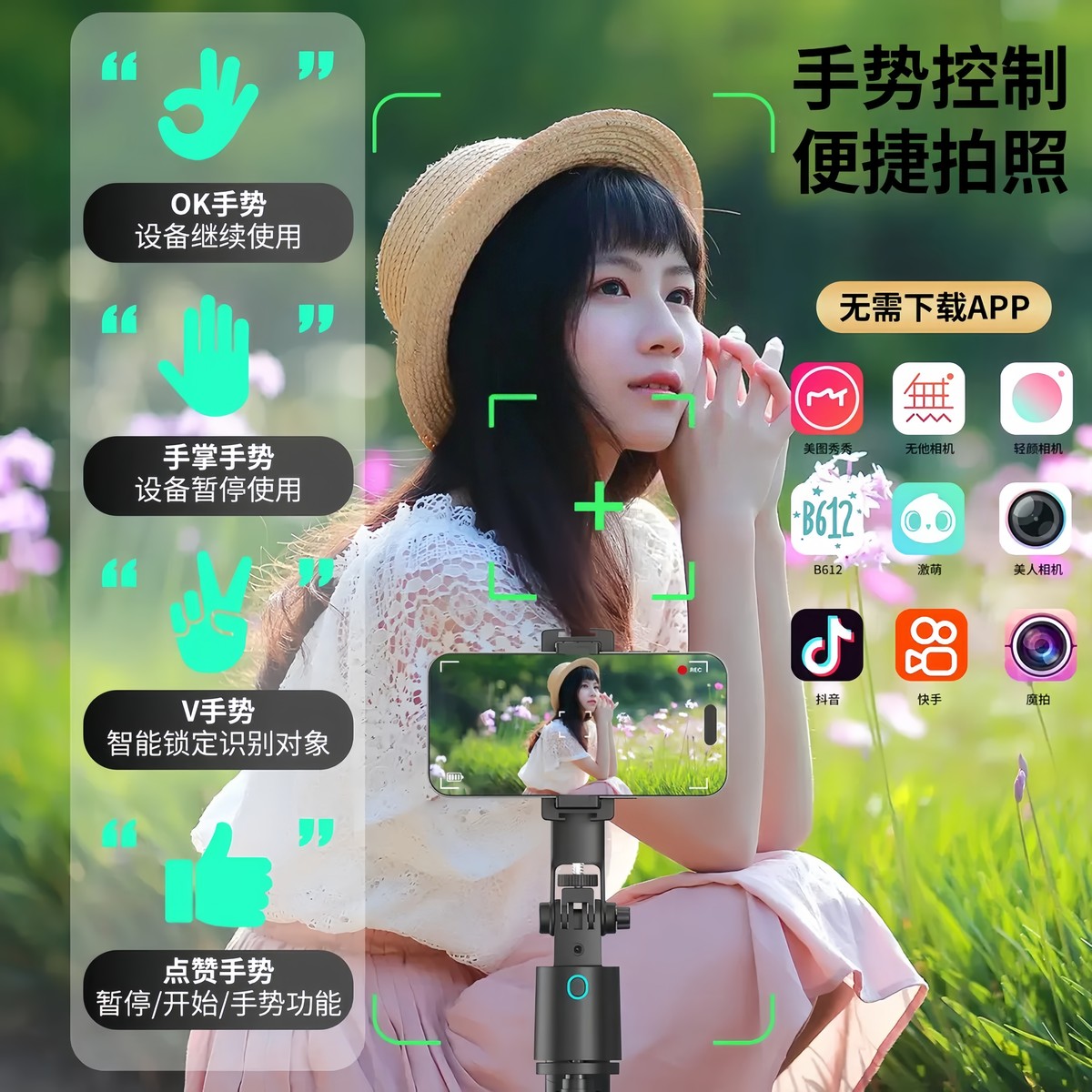趣步者360°智能AI跟拍云台2025新款加固四脚架拍照直播通用支架