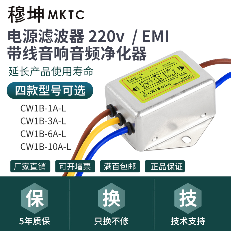 带线音响音频净化CW1B1A3A6A10A抗干扰220V低通电源UEMI滤波器模