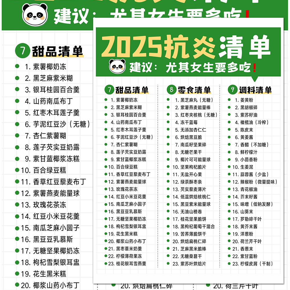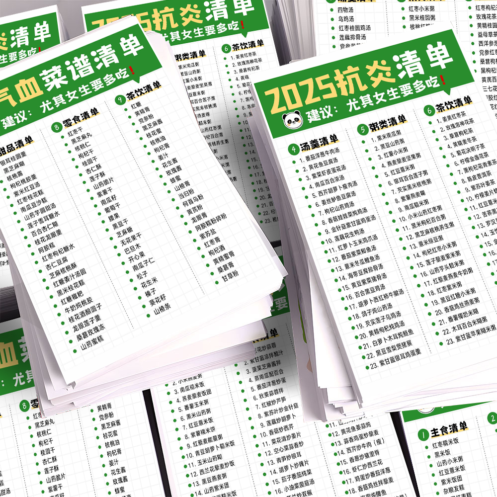 抗炎养气血菜谱清单内调外养中医养生增强免疫力补气血食谱贴画