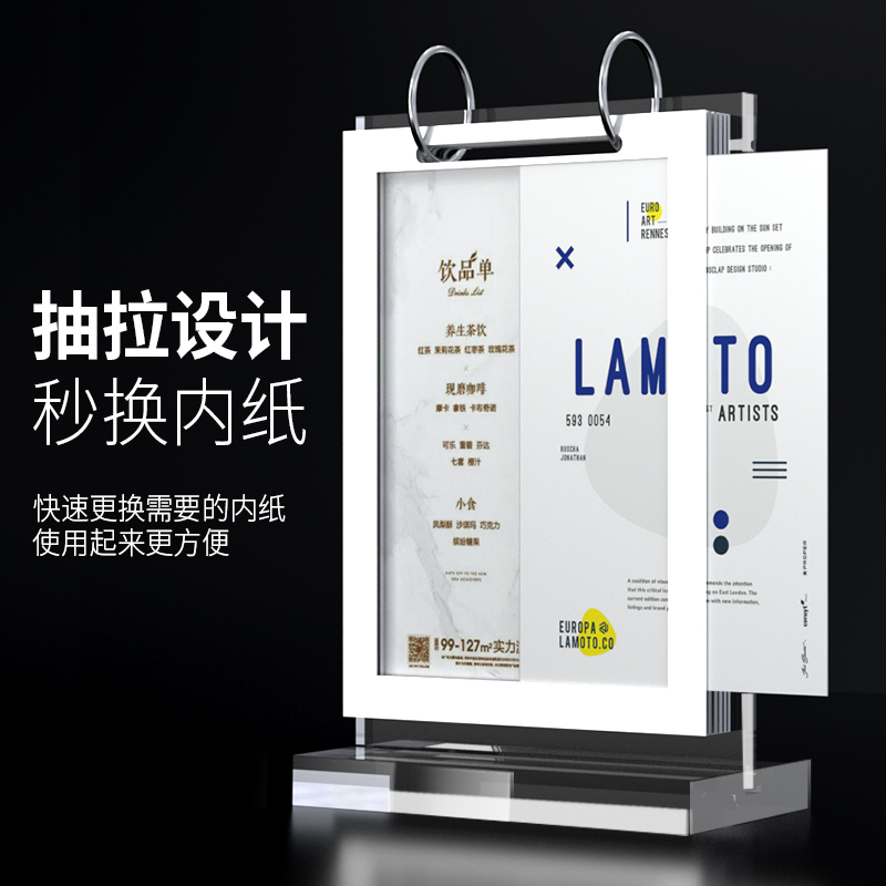 A4 A5亚克力透明翻页台卡桌签价格展示牌餐厅菜单台签t型台卡架双面台历相册活页台牌桌牌餐牌立牌展示架