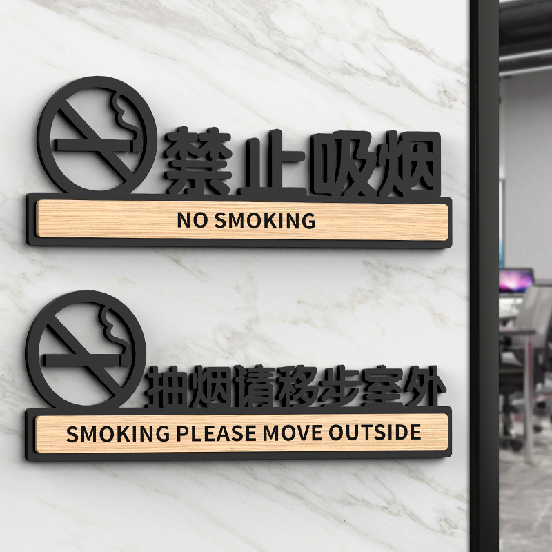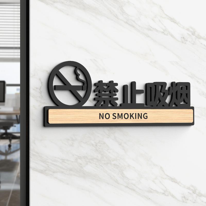 亚克力禁止吸烟提示牌警示标识禁烟贴请勿严禁抽烟指示牌子墙贴室内电梯车内车贴大号标志贴纸公共场所禁火区