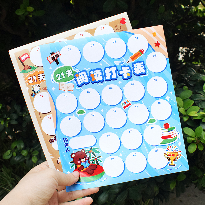 自带粘性21天阅读打卡记录表小学生古诗词背诵计划表墙贴日积月累读书闯关表儿童自律神器养成每日好习惯贴纸