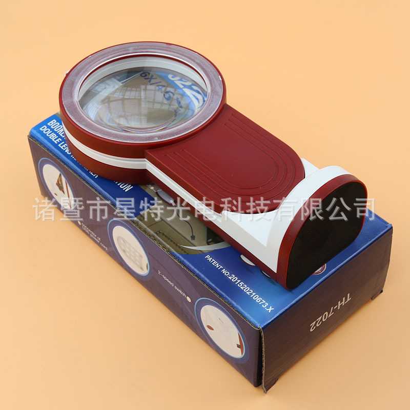 新款直销星特7022台式带灯手持led灯扩大镜USB看书灯充电支架折叠