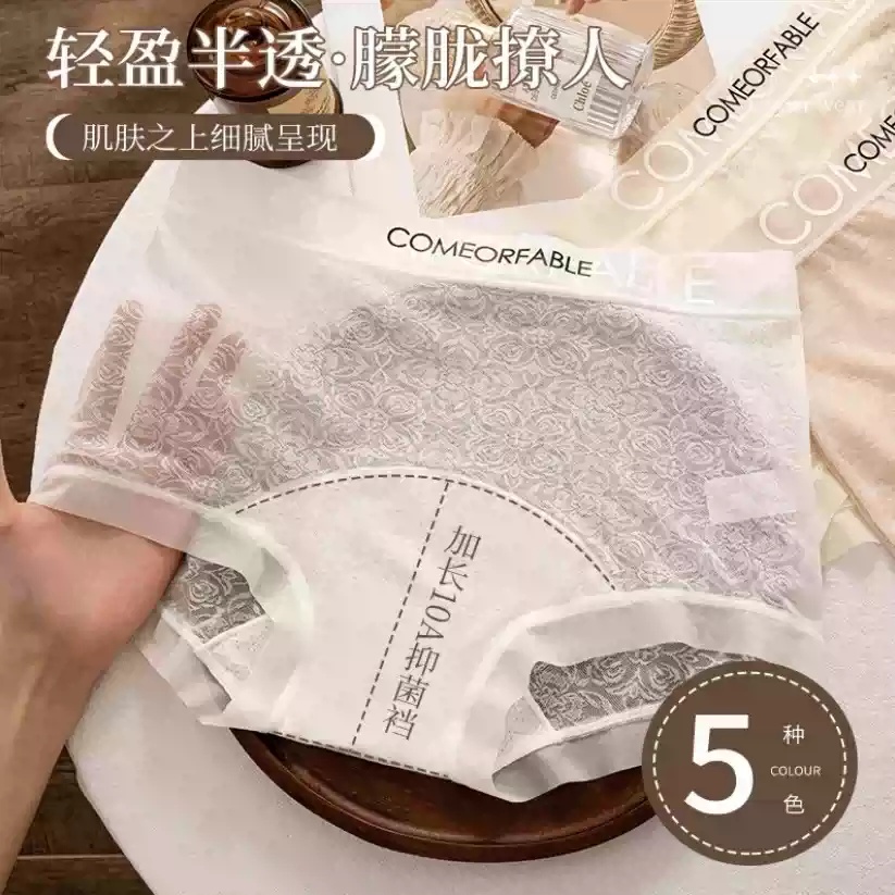 中腰性感内裤女士蕾丝透明纯棉新款无痕透气收腹提臀不夹臀平角裤