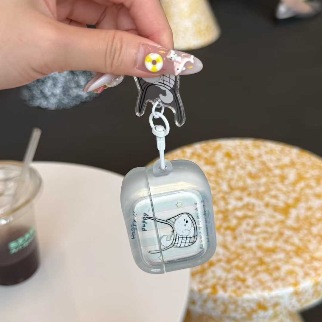ins风适用苹果airpods4蓝牙耳机壳airpodpro2保护套airpods3可爱卡通airpods2条纹购物袋小狗挂件透明防摔女