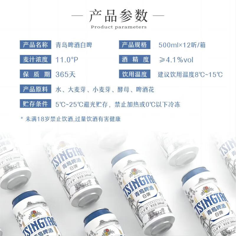 青岛白啤500ml*12罐/24罐麦汁浓度11度啤酒麦芽