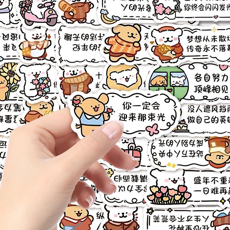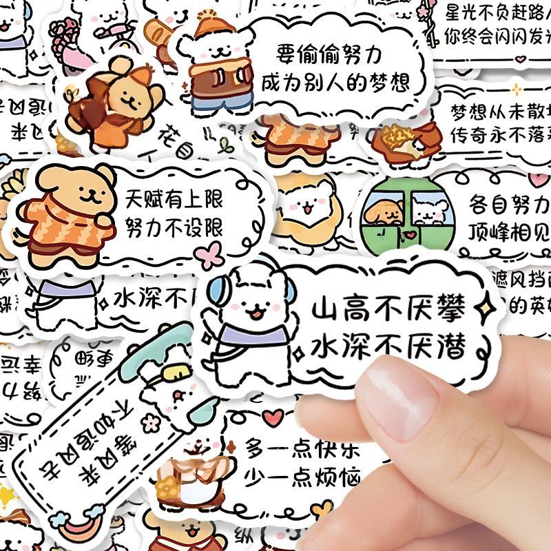 120张线条狗励志文案贴纸卡通可爱ins风治愈系手机壳手帐贴画防水