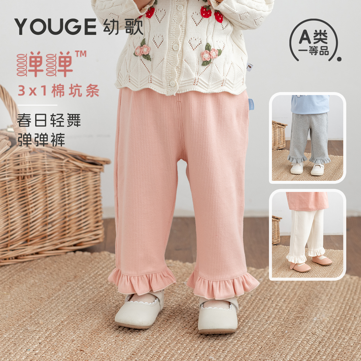 【弹弹裤】幼歌婴幼儿春新儿童高弹亲肤竖坑条百搭花边打底喇叭裤