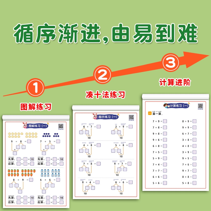 凑十法借十法幼小衔接教材全套一日一练专项训练10以内的加减法练习册分解与组合数学思维幼儿园大班学前班一年级口算题卡天天练