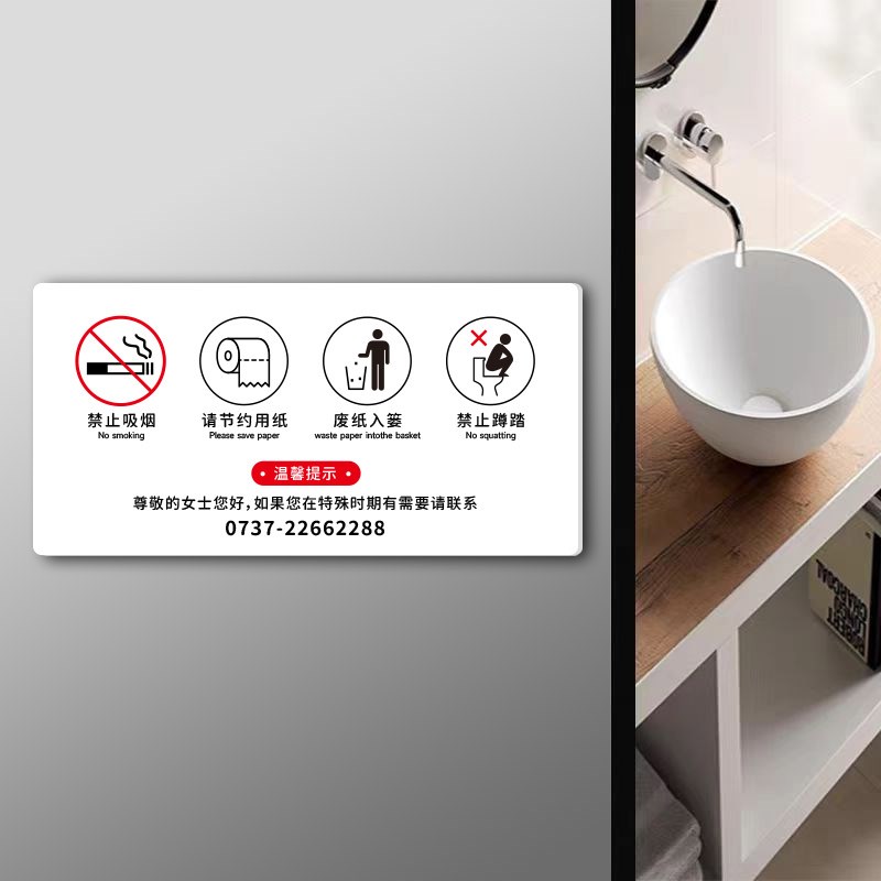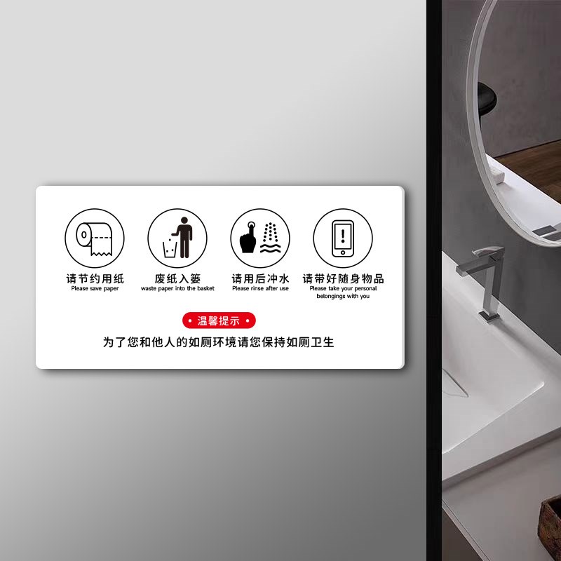 化妆室生理提示牌酒店洗手间节约用纸便后冲水温馨提示牌标语组合