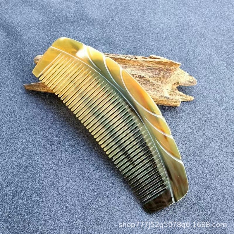 越南牛角梳加厚黑花牛角梳子半月无手柄按摩梳头疗刮痧