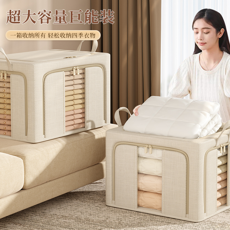 2个装衣服收纳箱棉麻布艺整理换季新神器折叠衣物整理箱被子百纳