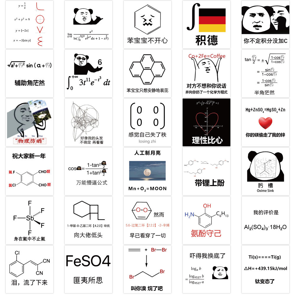 124张搞笑数理化公式表情贴纸理科生知识点装饰防水素材贴画手账