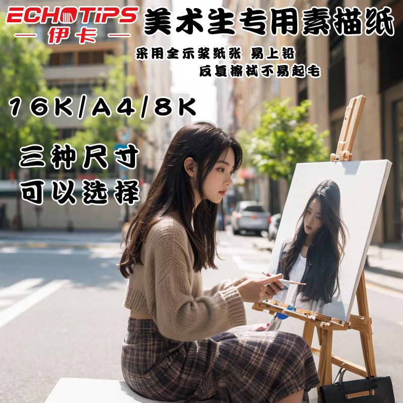伊卡素描纸加厚美术画纸铅画纸初学者儿童a3马克笔绘画8k白纸学生用A4美术生专用涂鸦画画马克纸描绘