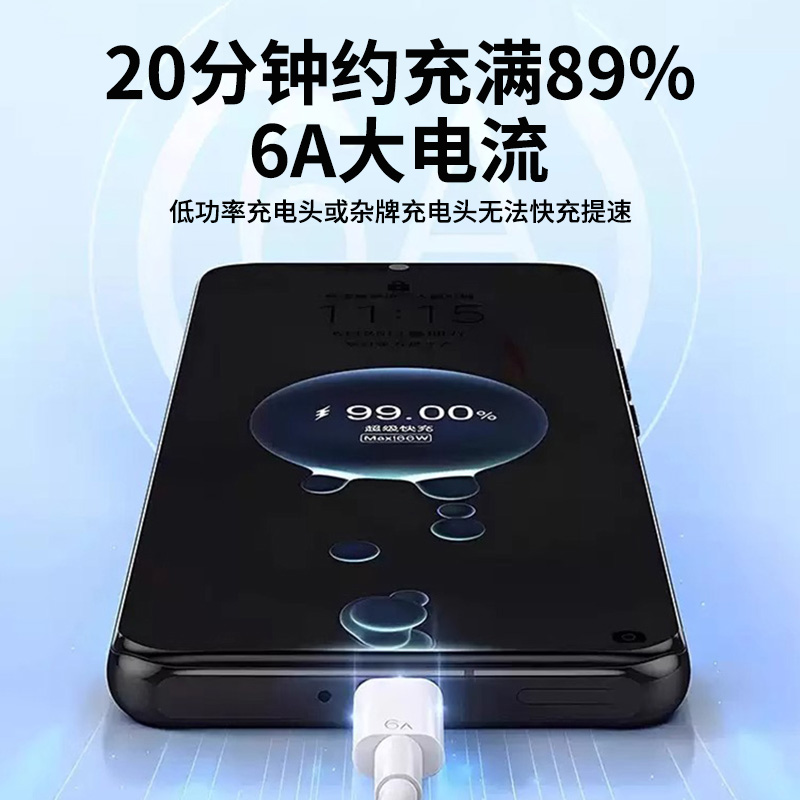 6A数据线超级快充usb充电线闪充适用于安卓华为荣耀vivo手机通用充电器线快充单头原梯形充电宝装正品加长加