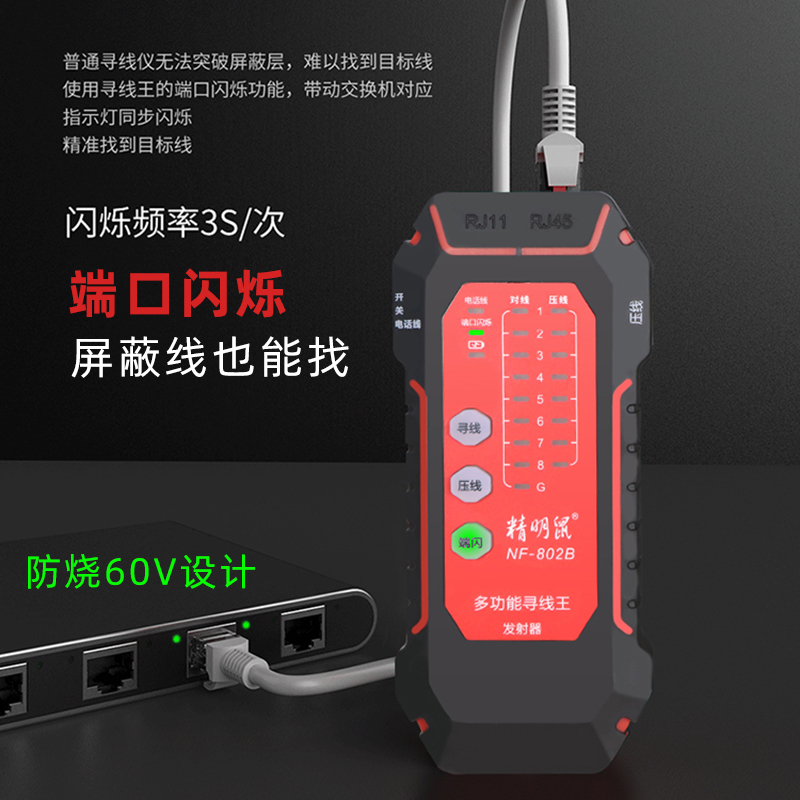 精明鼠NF-802B网络寻线仪网线检测器单头压接水晶头测试抗干扰无噪音巡线仪器查线器多功能通断POE交换机防烧