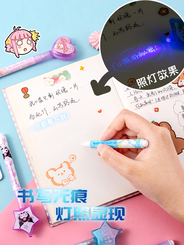 新款魔术隐形灯照笔字迹消失记号笔可爱少女卡通荧光中性笔小学生