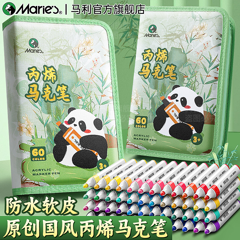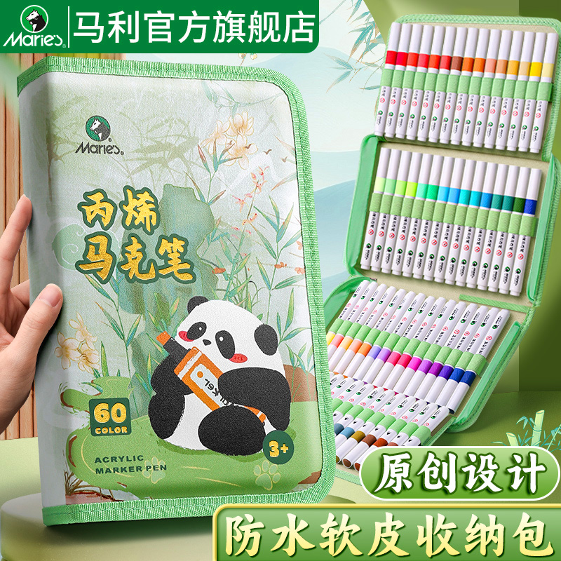 马利丙烯马克笔小学生美术生专用水彩笔画笔幼儿园儿童可水洗无铅毒24色的颜色笔防水不掉色36色48色60色