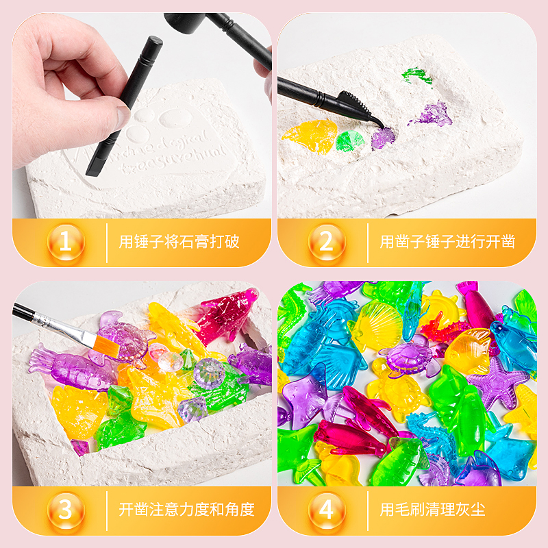 儿童挖宝石玩具掘挖矿石考古手工diy男女孩钻石寻宝藏考古盲盒3-6