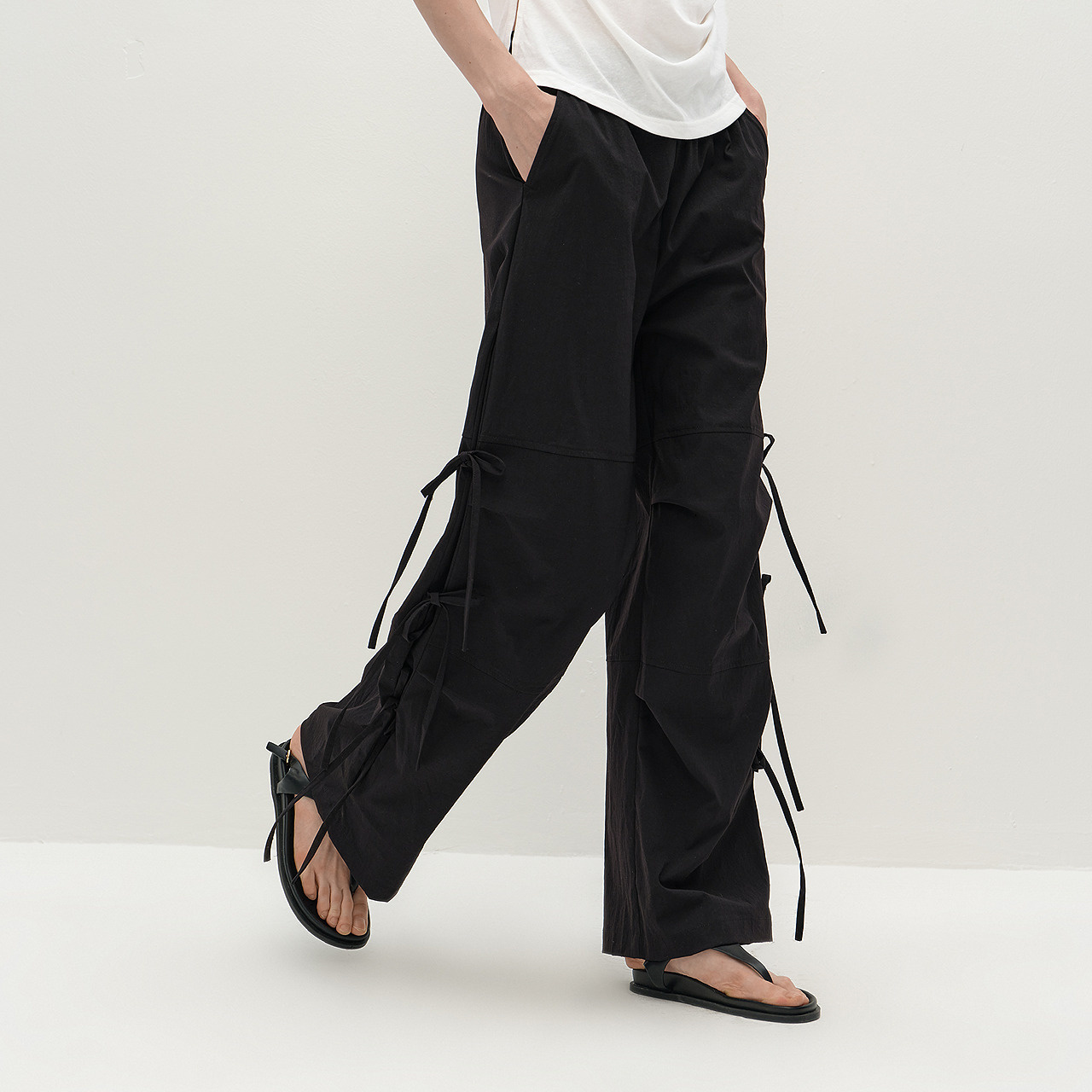 商场同款|森马休闲裤女秋蝴蝶结宽松肌理长裤2025新款甜酷阔腿裤