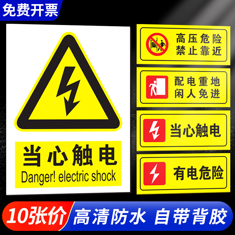 有电危险警示贴小心有电标识请勿触摸安全用电配电箱高压危险三角形有当心触电提示牌请勿靠近安全标志警示牌