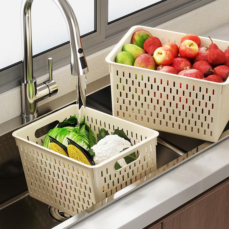 零食收纳筐厨房杂物收纳盒整理盒桌面塑料置物篮长方形客厅储物