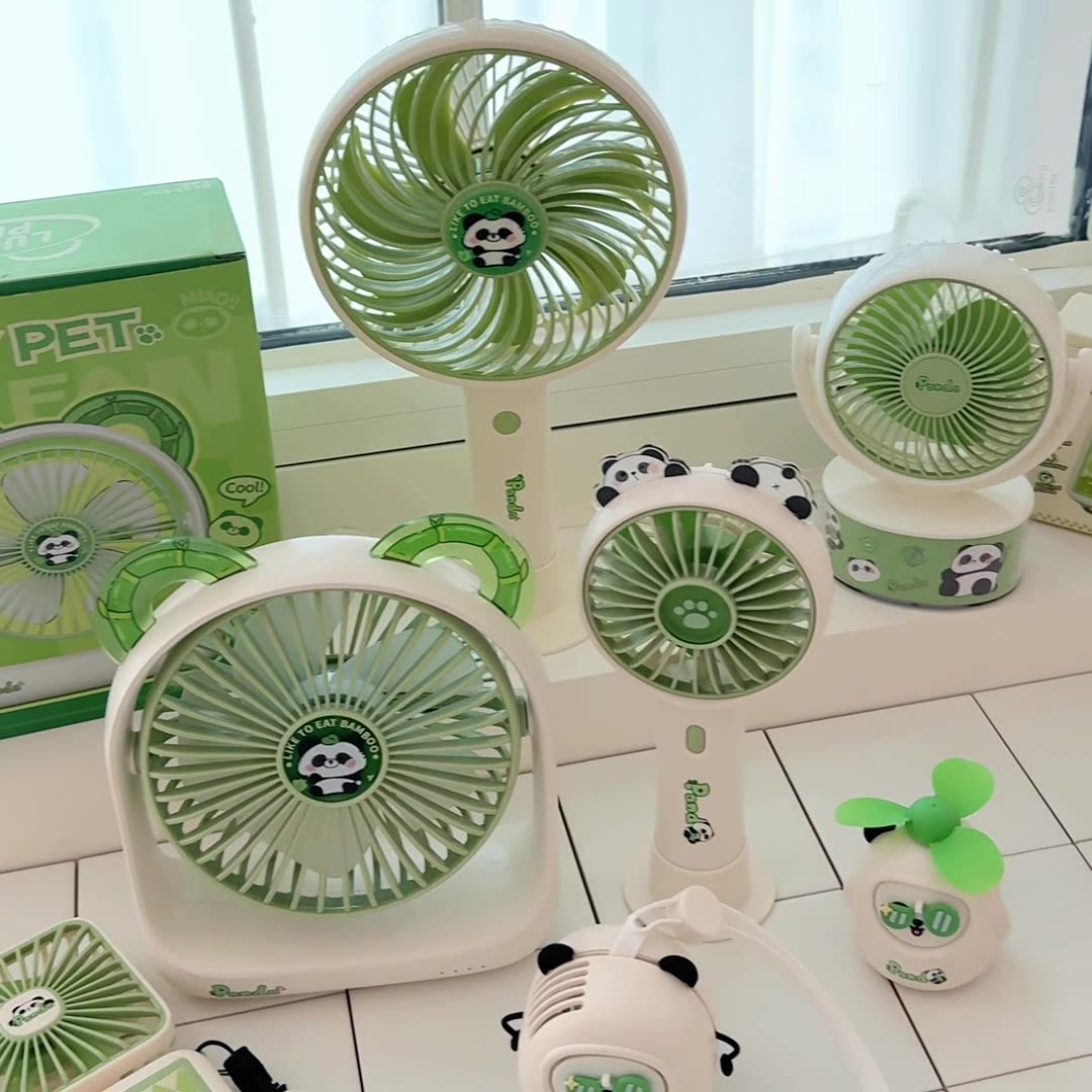绿色熊猫合集桌面风扇三档充电台式风扇便携式大风力静音手持电扇