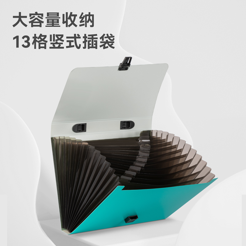 得力5880因为遇见你13格风琴包大容量资料册手提学生试卷分类索引收纳整理包办公文件夹多层插页孕检单收纳包