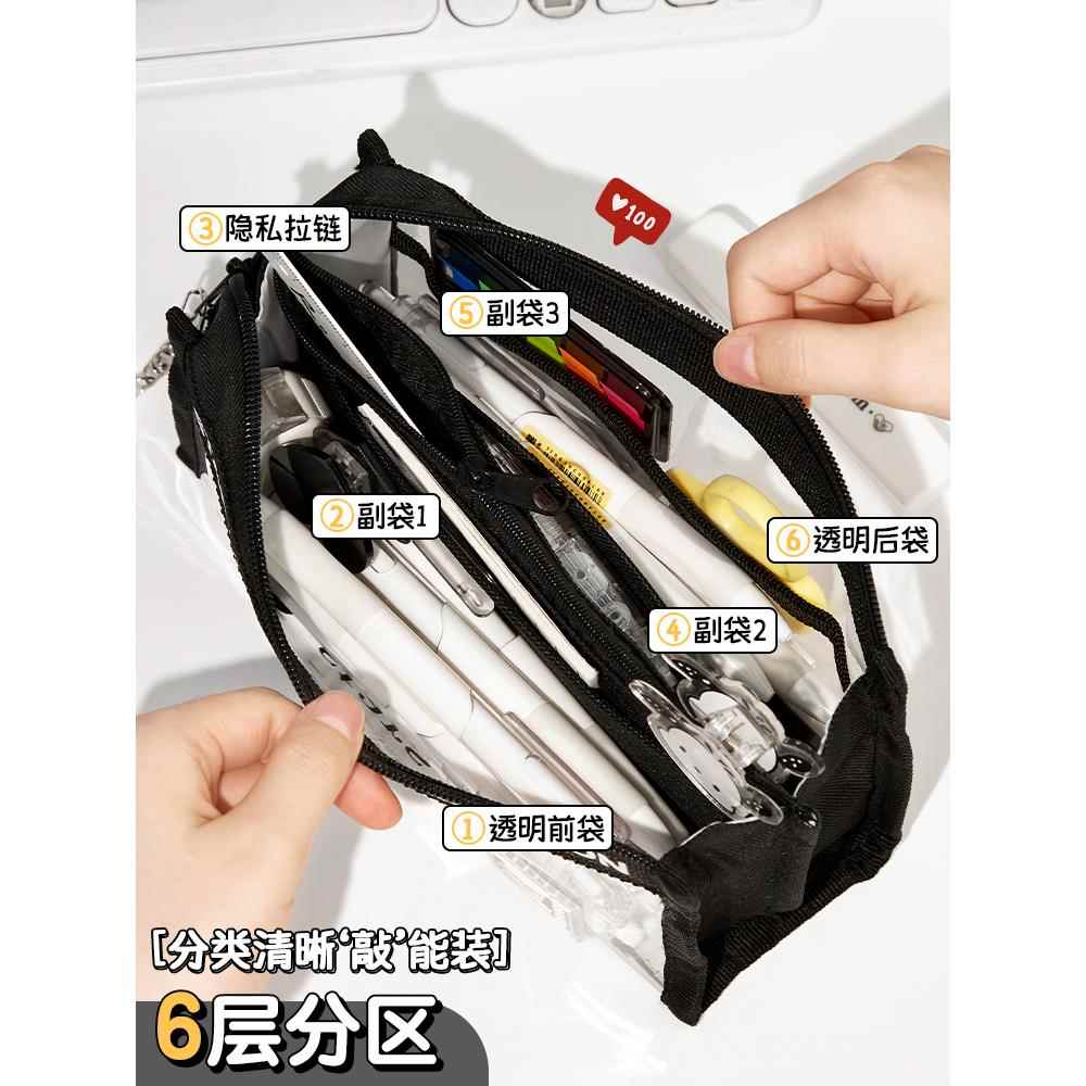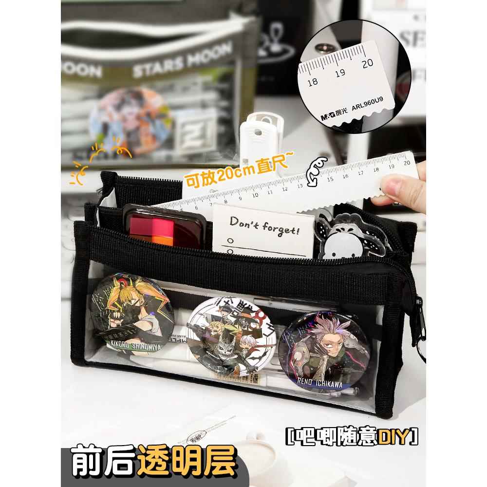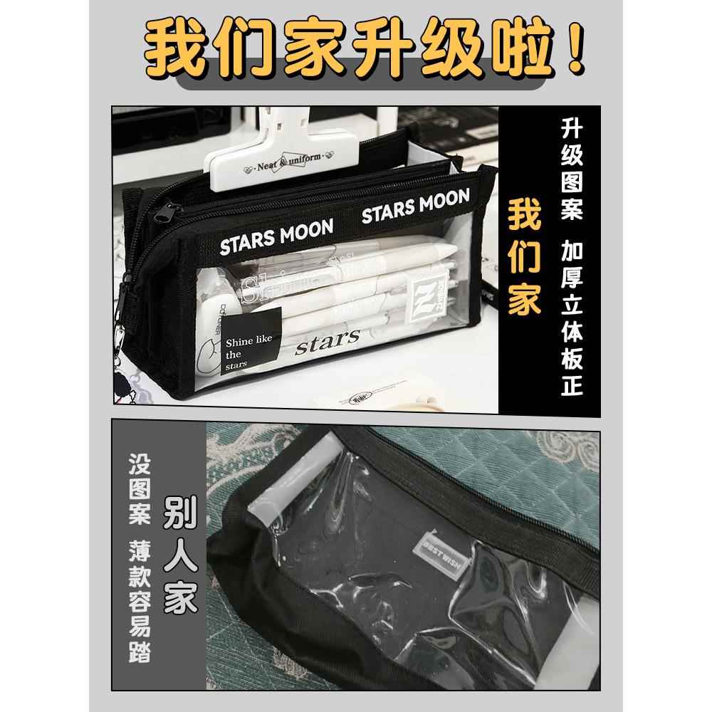 耐脏!夏天透明笔袋男孩2024新款大容量初中生高中2025黑色铅笔盒