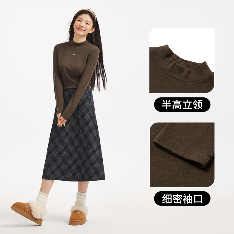热风2025年冬季新款女士偏厚半高领长袖T柔软舒适软糯亲肤