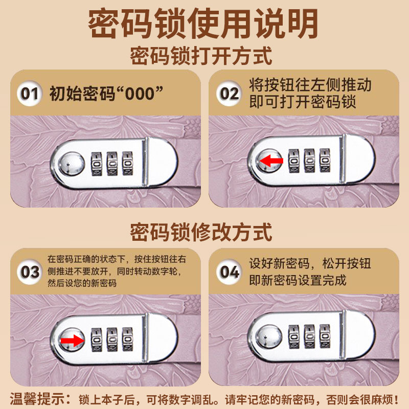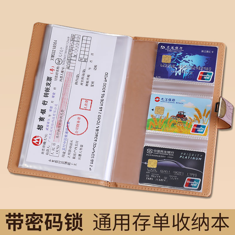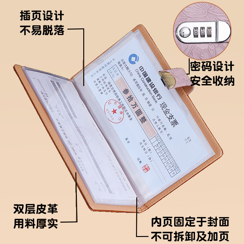 浮雕花纹支票定期存单收纳本带密码锁2025年新款银行纸质一体包大容量防水存折支票专用夹子多功能票据存单夹