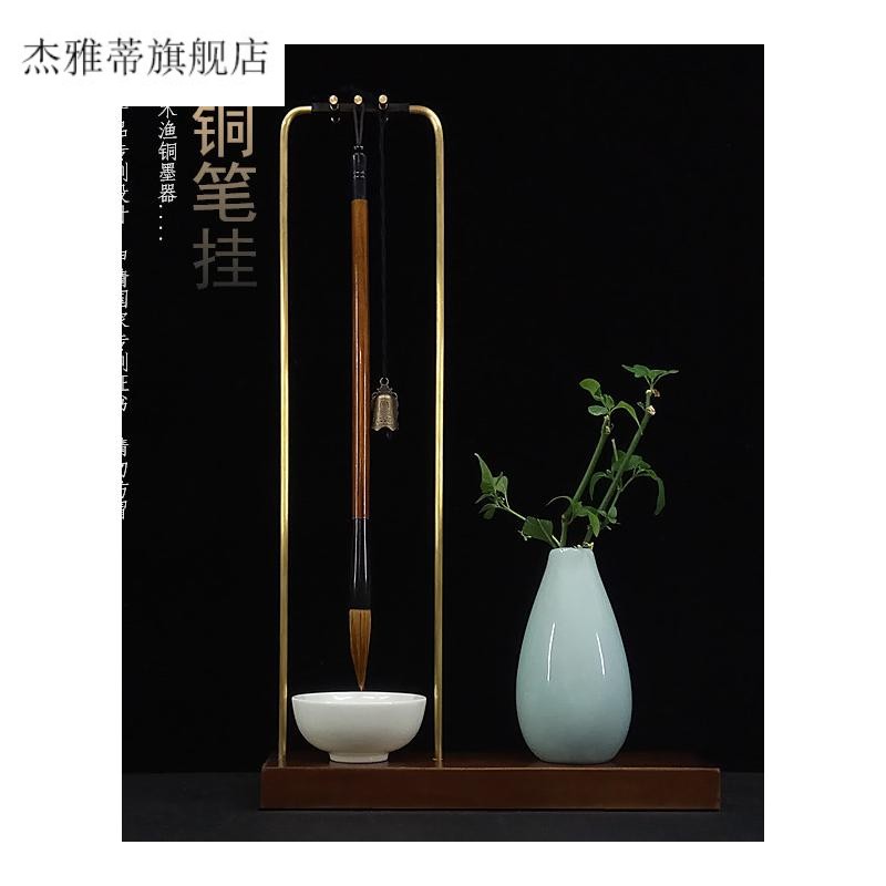 高档铜杆b笔架毛笔挂学生墨碟创意摆件挂笔卖笔展示架毛笔架砚台