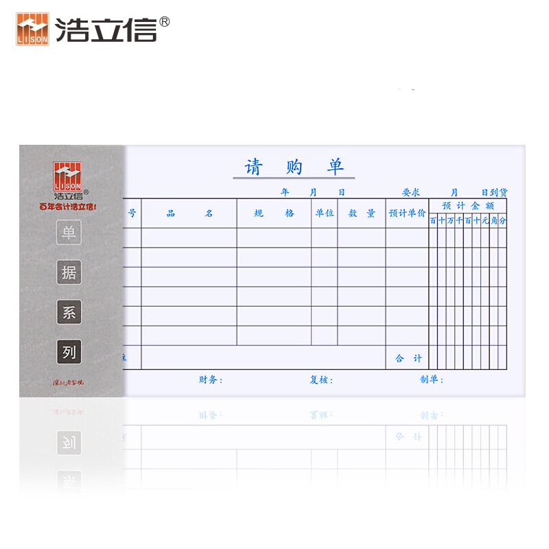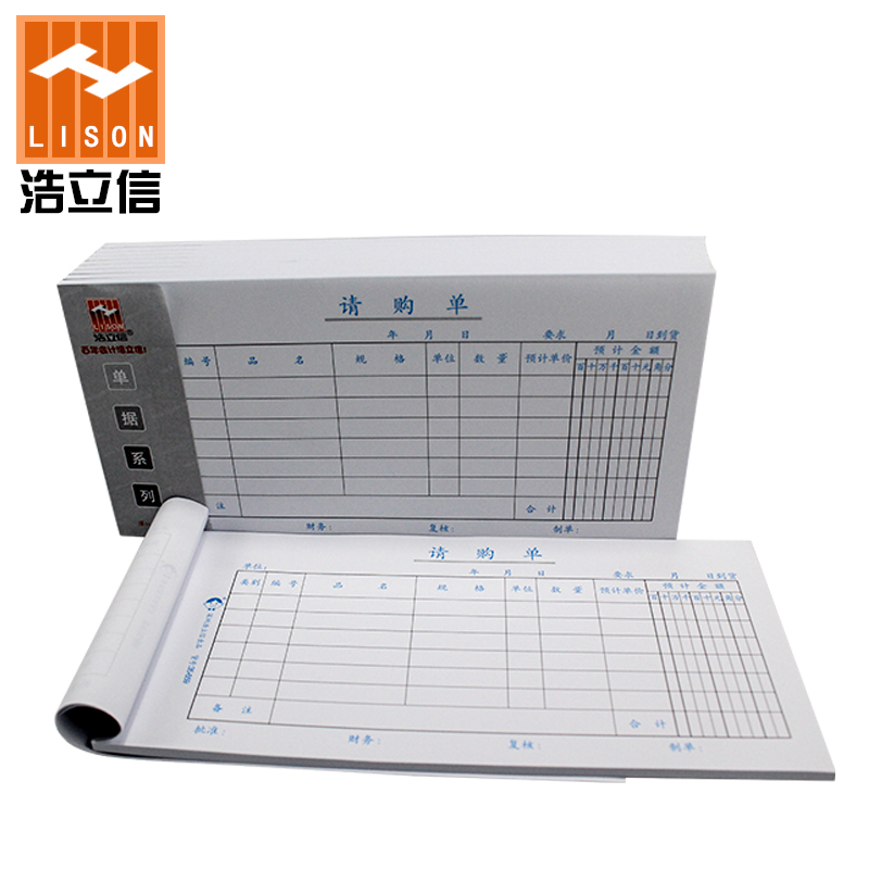 10本浩立信请购单采购通用申请单办公财务会计申购单凭证单栏材料采购单一联请购单物料订货单领料单收料单