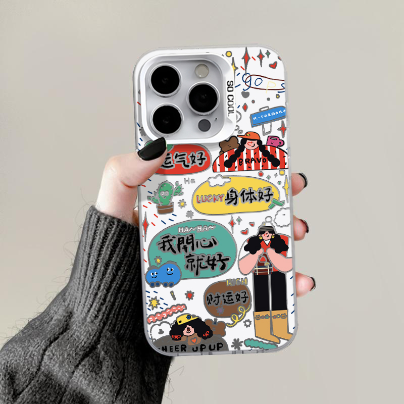 ins涂鸦运气好身体好手机壳适用iPhone16/15pro韩风max苹果14彩银13pro开心就好14PLUS硬底12防摔套11全包xsr