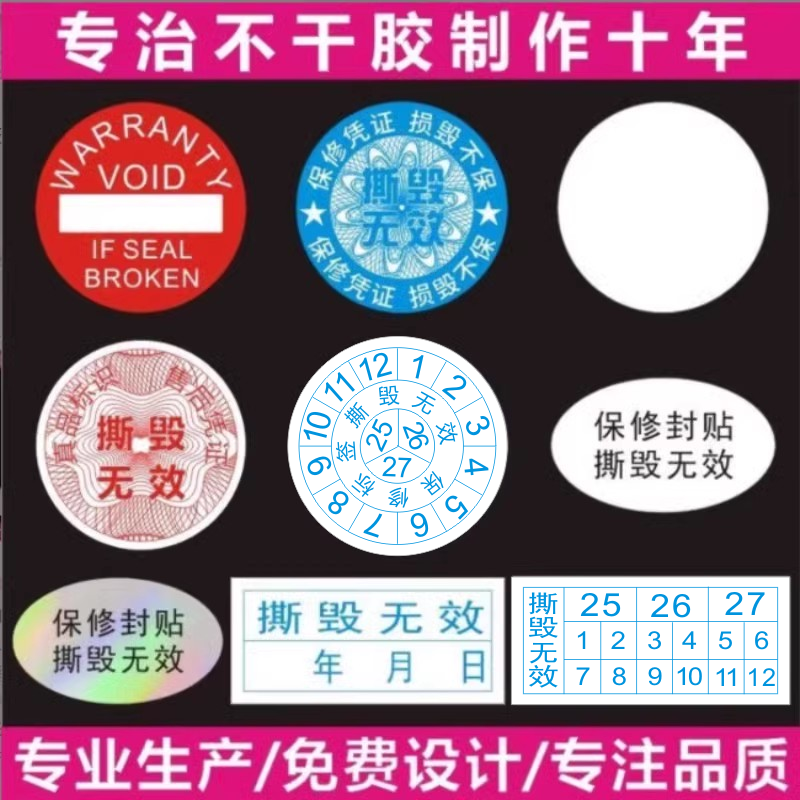 诗束 易碎标签一次性防拆贴纸撕毁无效封口贴手机电器维修保修日期贴