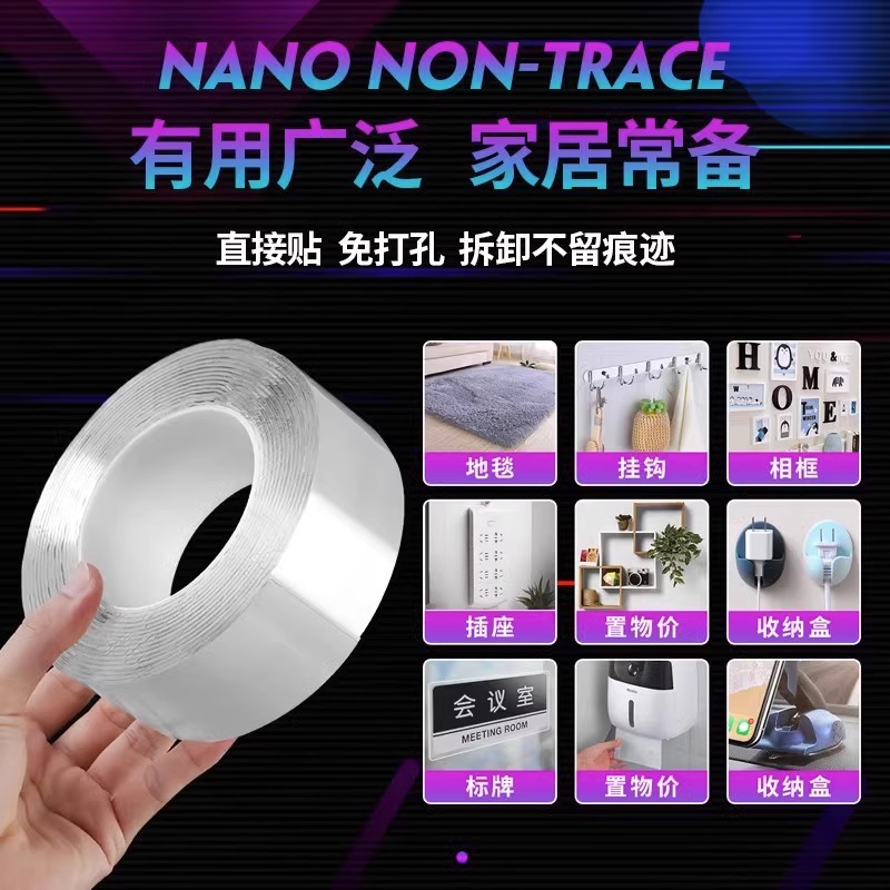 纳米双面胶带可水洗无痕透明双面贴魔力地毯固定排插辅助粘胶