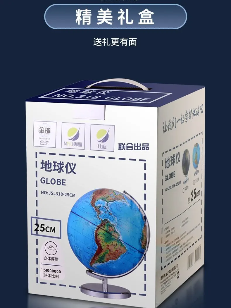 浮雕地球仪3d立体凹凸浮雕32cm智能初中生专用高中正版教学摆件
