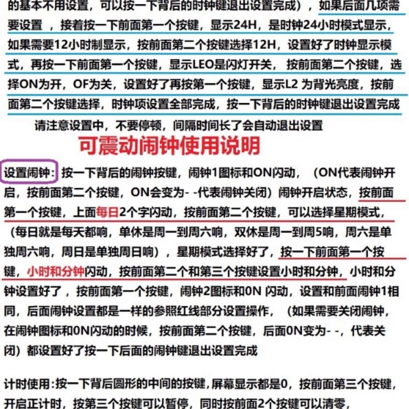 学生宿舍震动闹钟 静音无声时钟 叫醒计时器定时器 背光电子省电