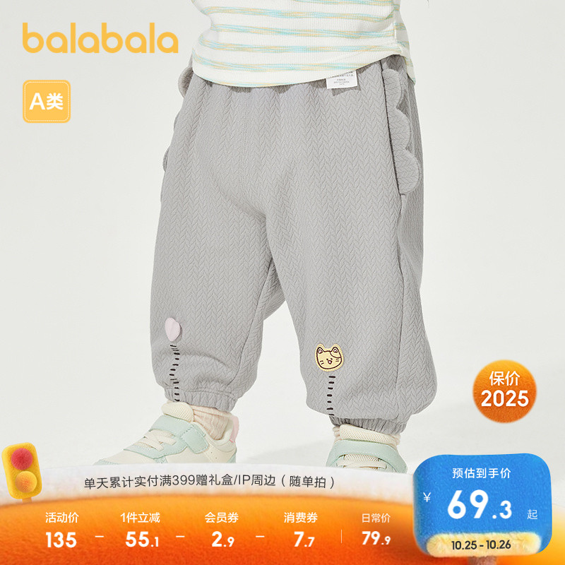 巴拉巴拉童装女童男童长裤2025新款春秋装宝宝休闲裤子小童刺绣萌