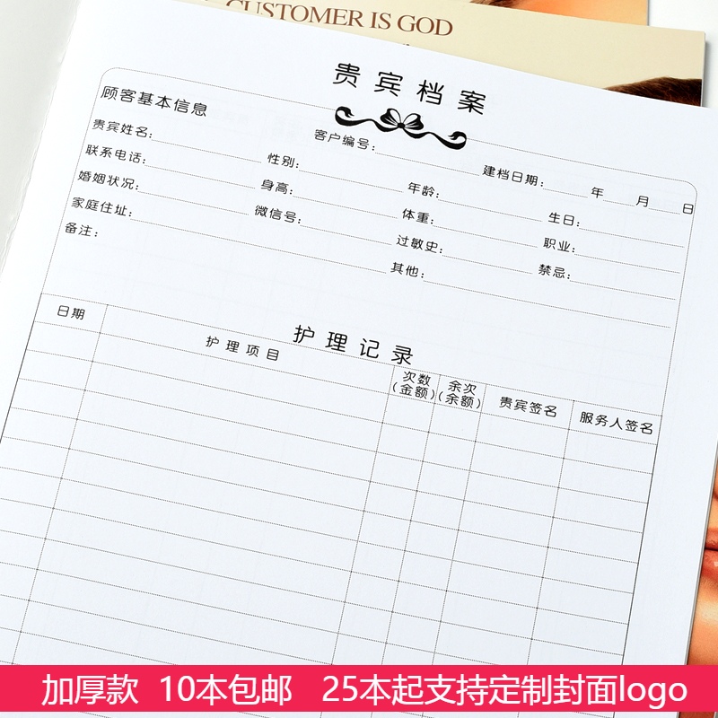顾客会员档案表美容院一个客户登记册护理消费记录本子单人本定制
