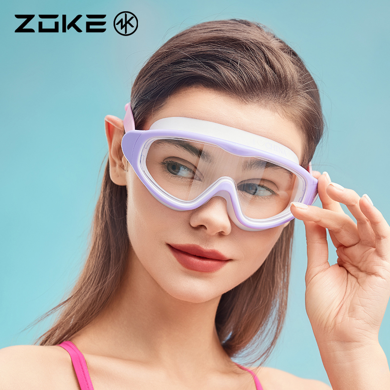洲克泳镜成人大框高清防水防雾zoke女士游泳训练不勒眼电镀初学者