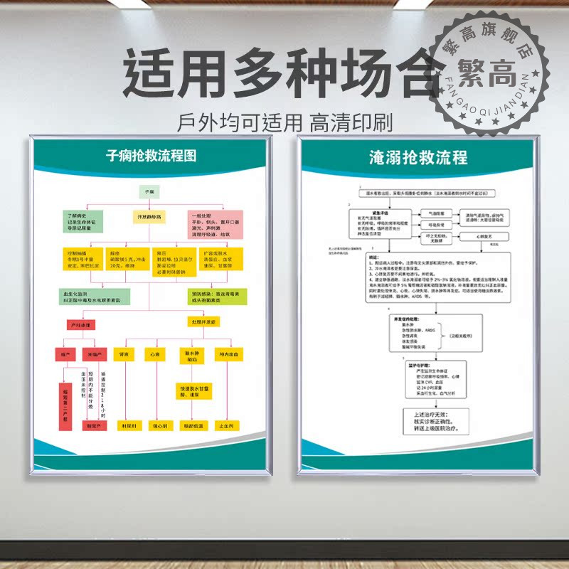 医院诊所门诊急救应急抢救流程图科室挂图步骤心肺复苏药物过敏性反应休克医疗处置危重病人窒息中毒输液上墙