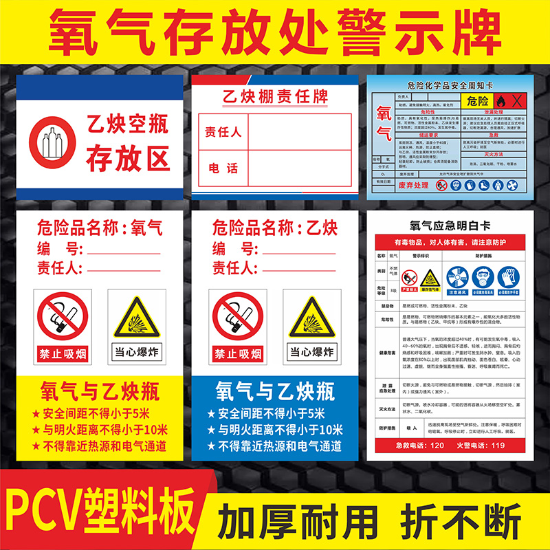 乙炔氧气安全存放标识牌安全生产标志牌乙炔瓶氧气瓶运输储存使用管理制度牌告知卡责任牌警示氧气四防标识牌