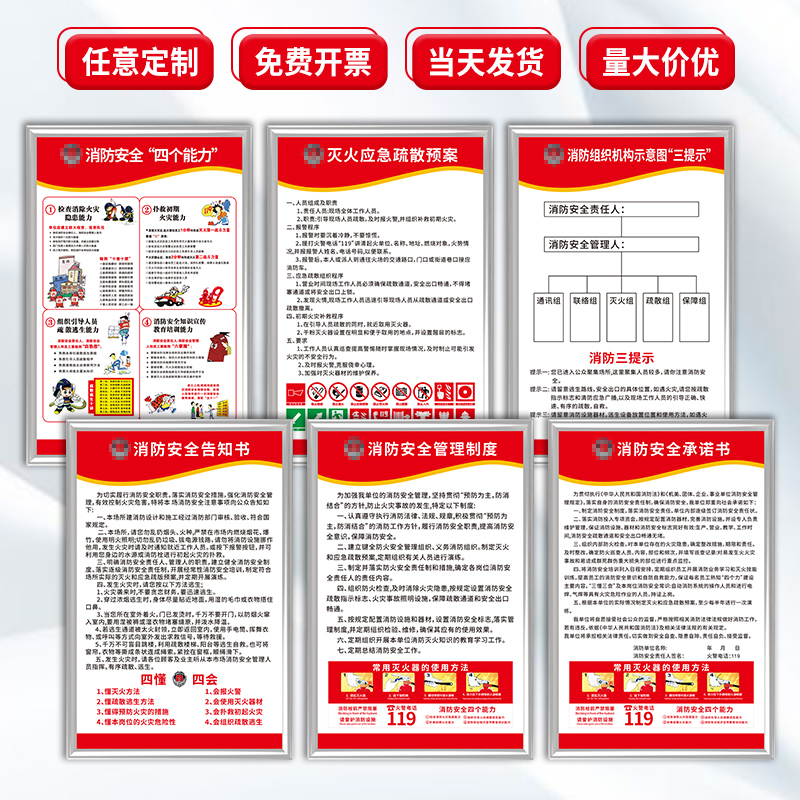新款消防安全管理制度四个能力三提示标识标牌学校公共场所车间应急预案承诺告知书图示宣传海报贴纸上墙定做