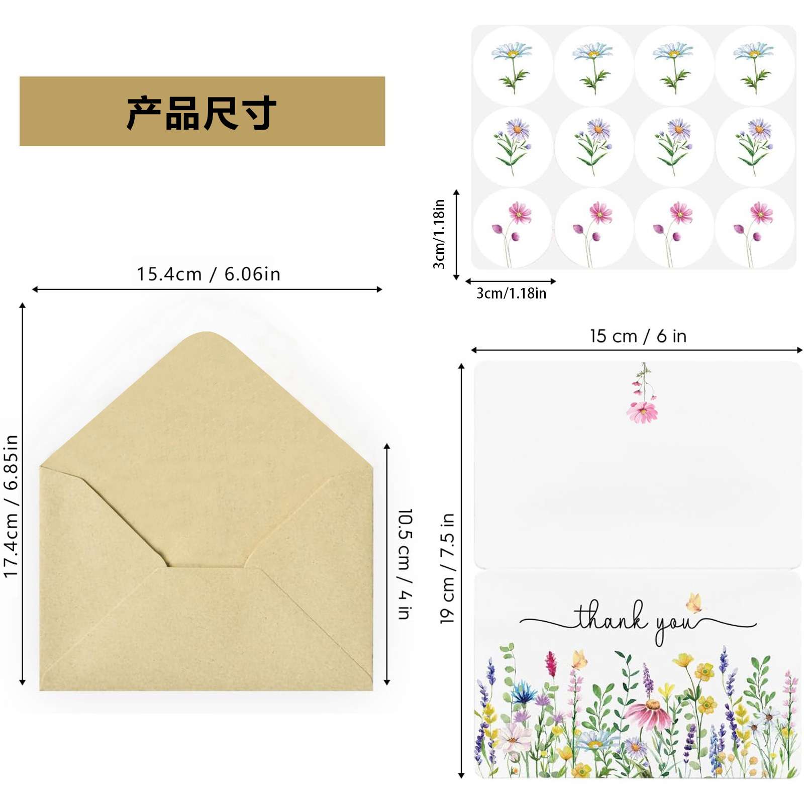 36套装薰衣草雏菊春天感谢卡花朵礼品贺卡带信封贴纸圆角便条折卡
